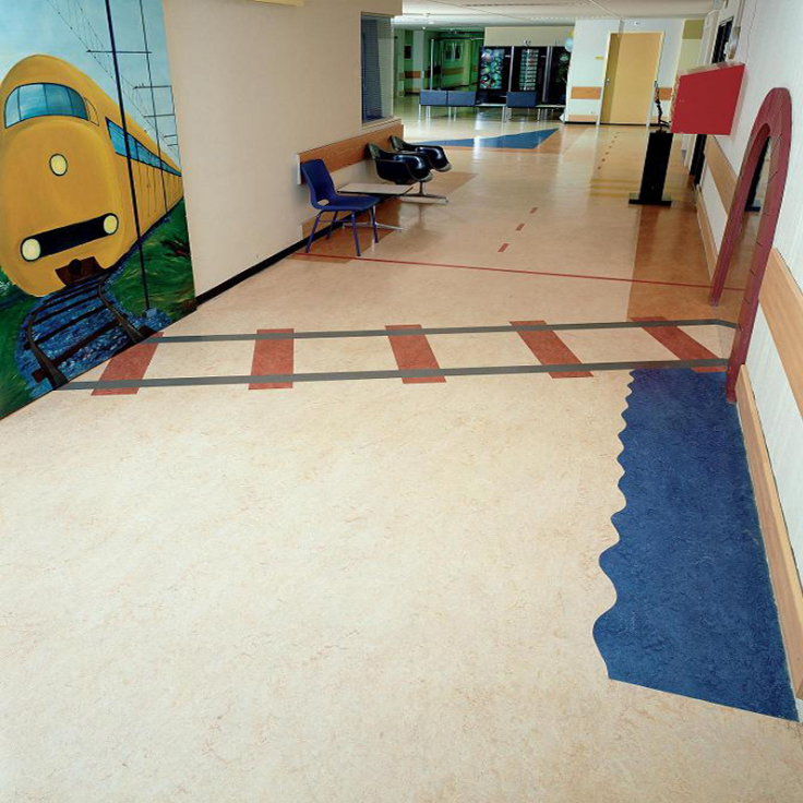 幼儿园地胶面层中使用了经高科技锻造的透明TPU 耐磨层,使地胶的耐磨损度大大加强,孩子们无论怎样运动玩耍,地板也能承受这种磨损。同时盛仕幼儿园地胶透明耐磨,也让老师的清理工作变得轻松起来,只需轻轻擦拭,地板就会恢复干净。